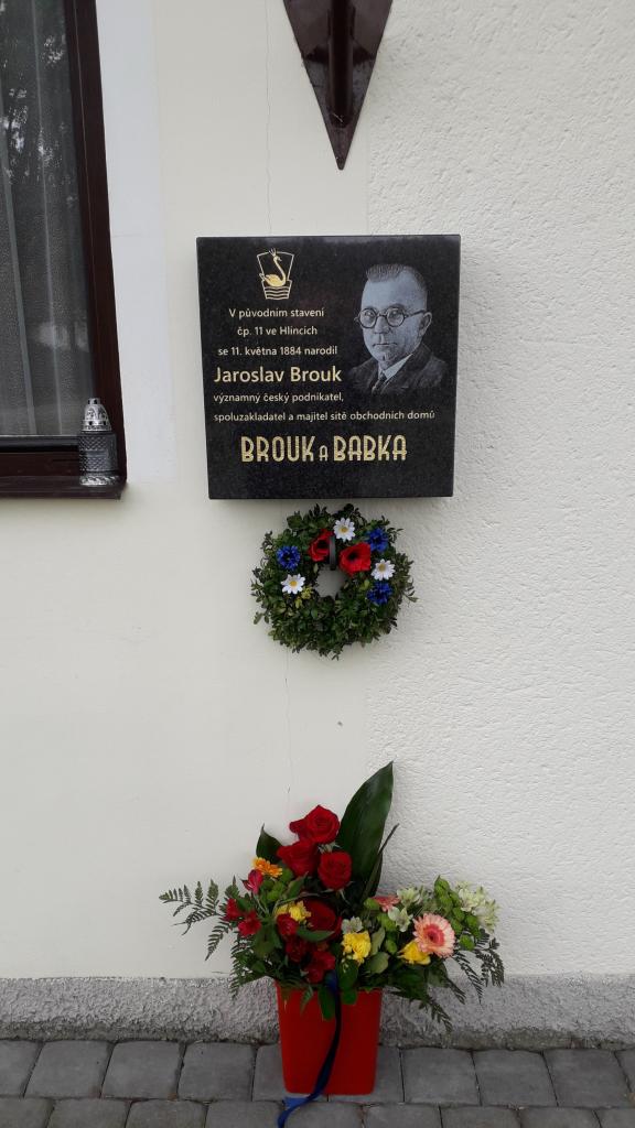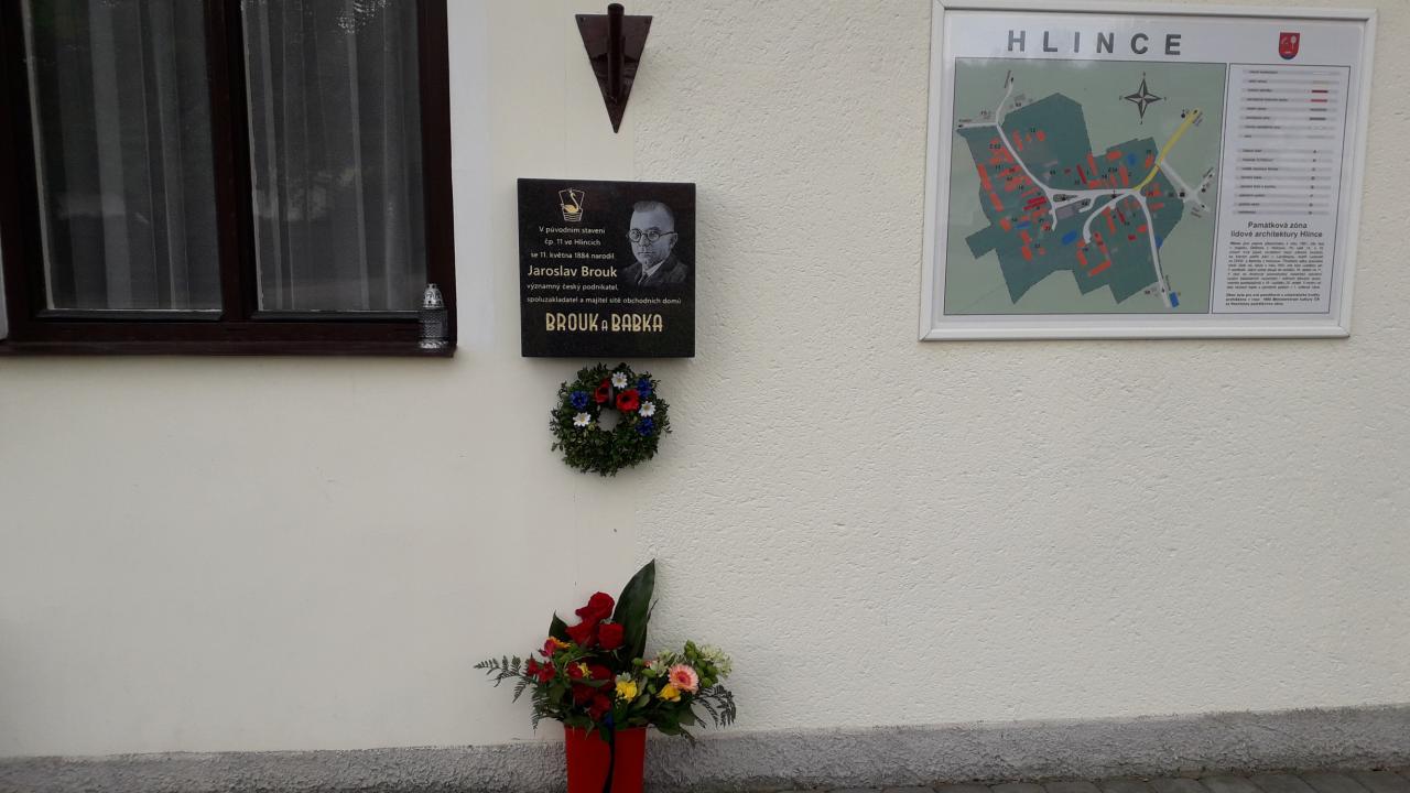 U příležitosti 135. výročí narození Jaroslava Brouka byla tomuto nejvýznamnějšímu rodákovi obce Hlince v sobotu 11. května 2019 slavnostně odhalena pamětní deska na budově obecního úřadu ve Hlincích čp. 44.