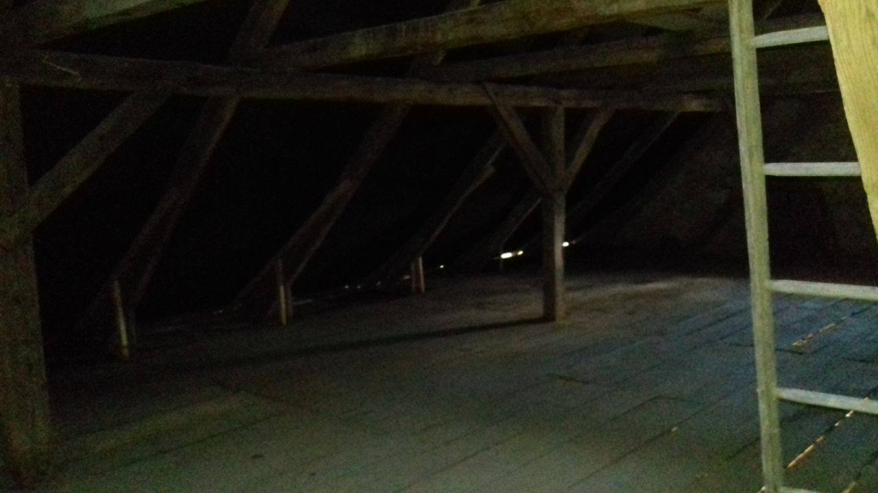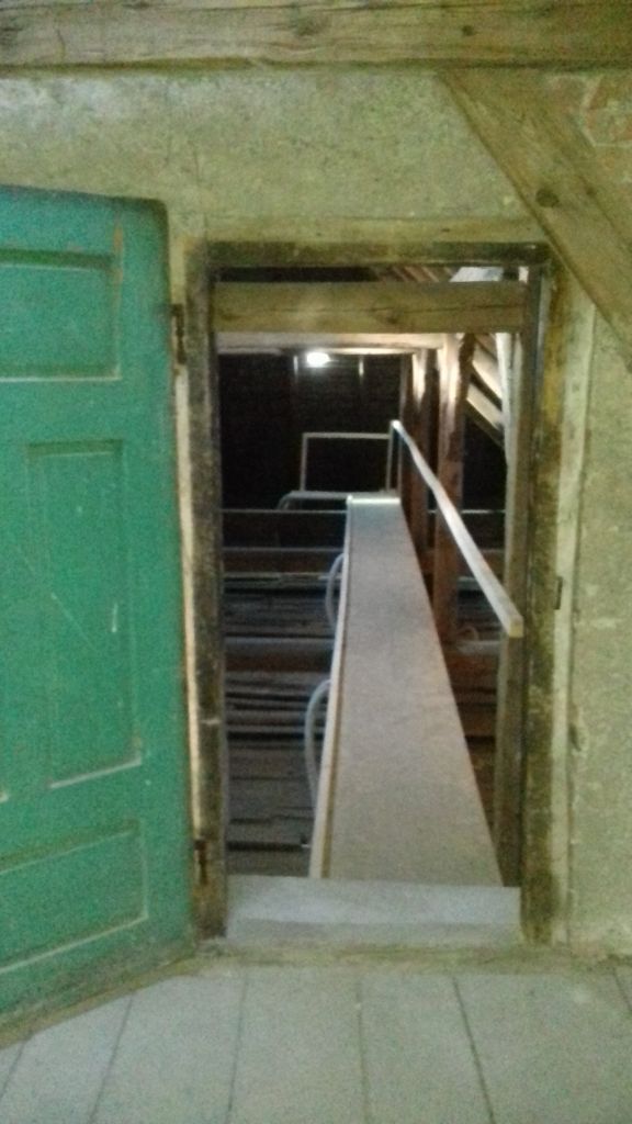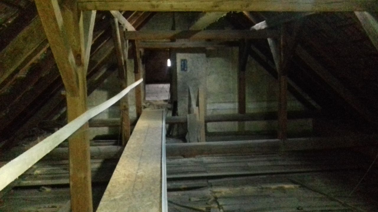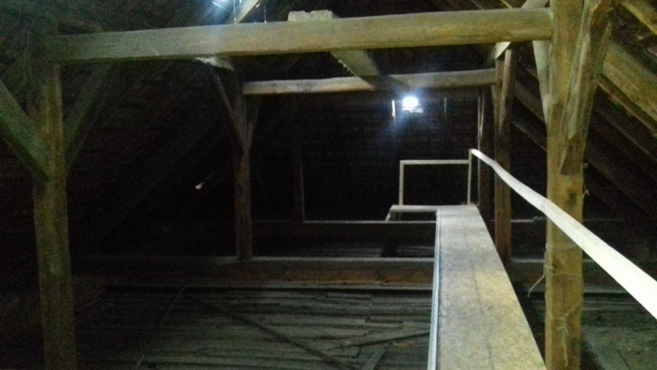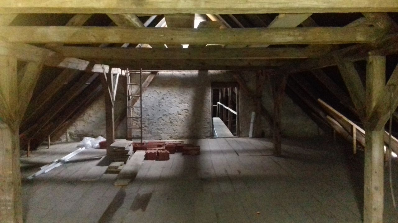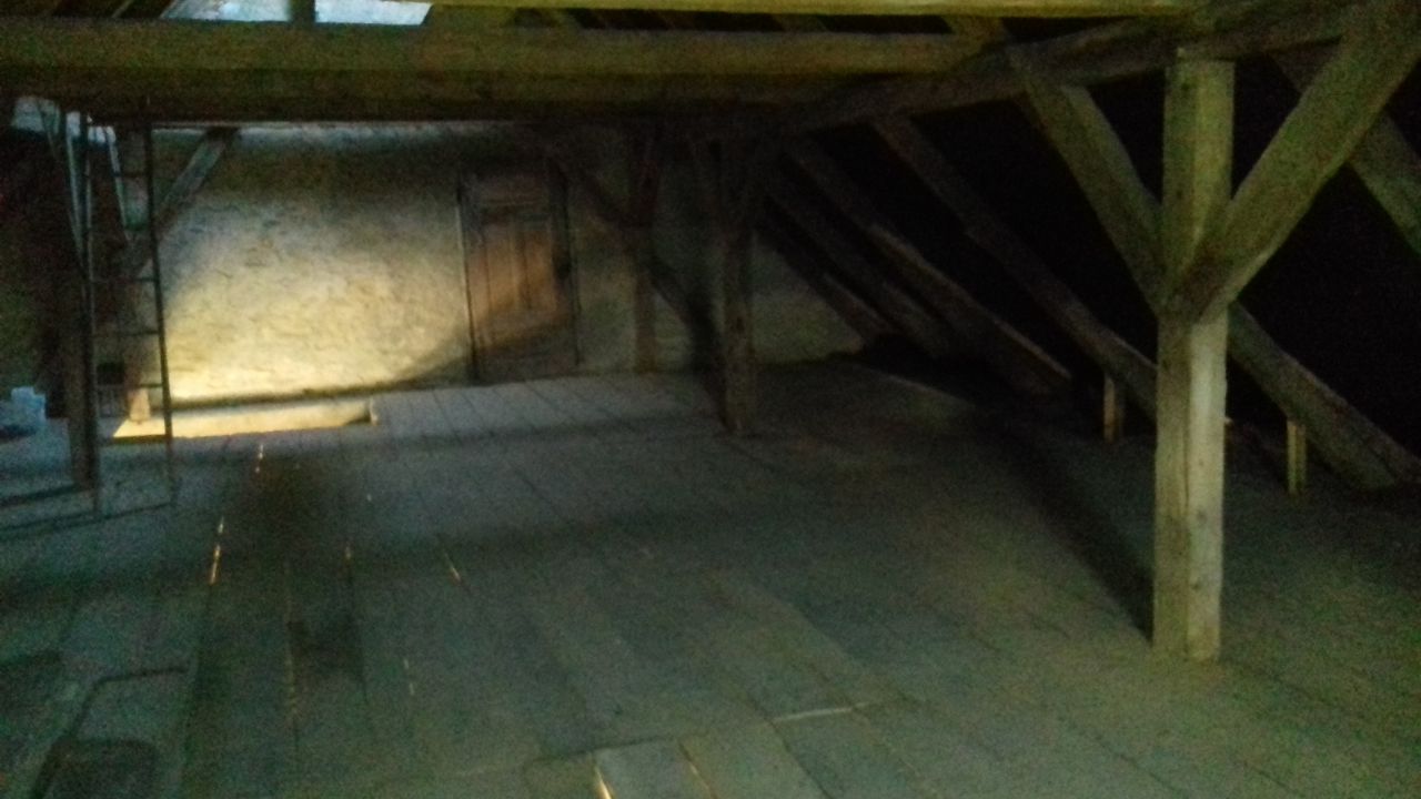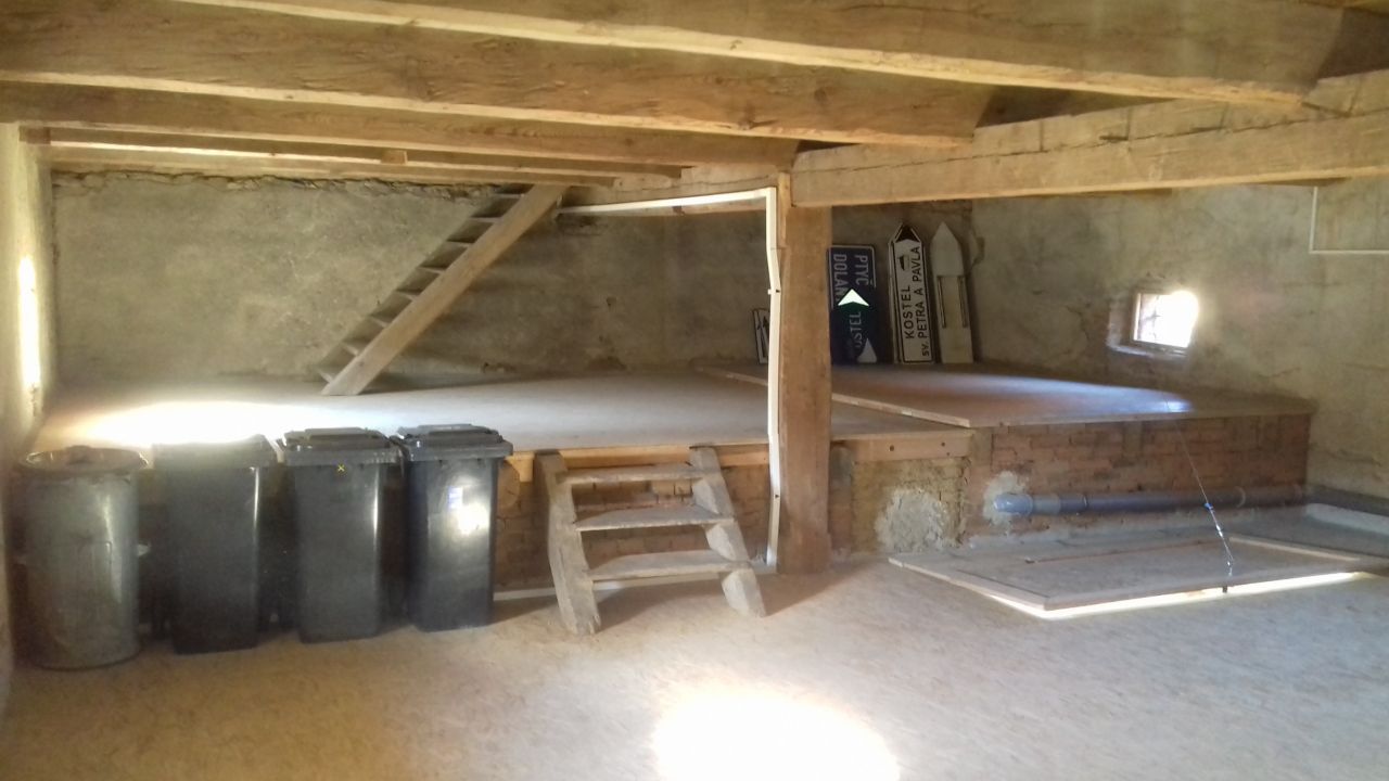 Druhé, nejvyšší patro sýpky - vchod do půdy nad Mysliveckým sálem