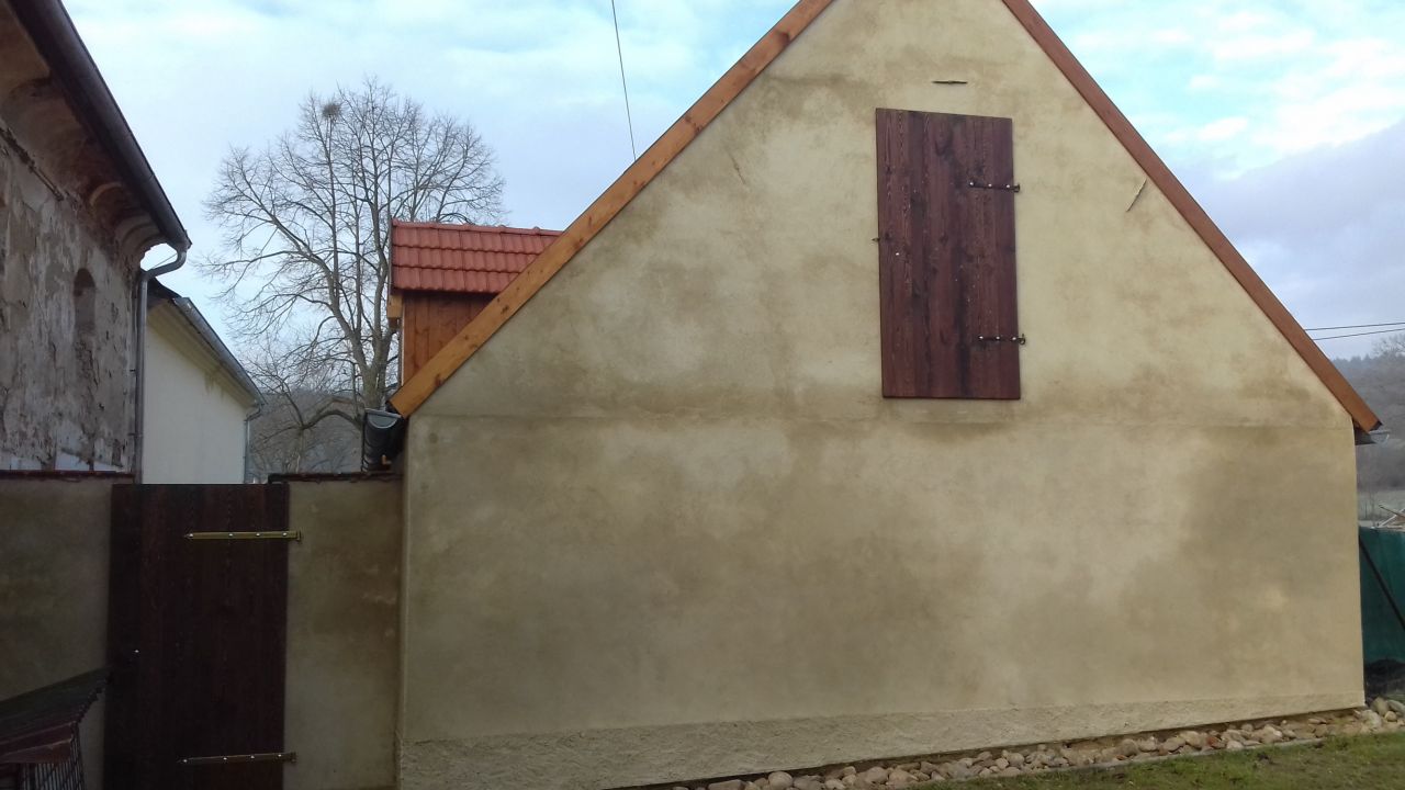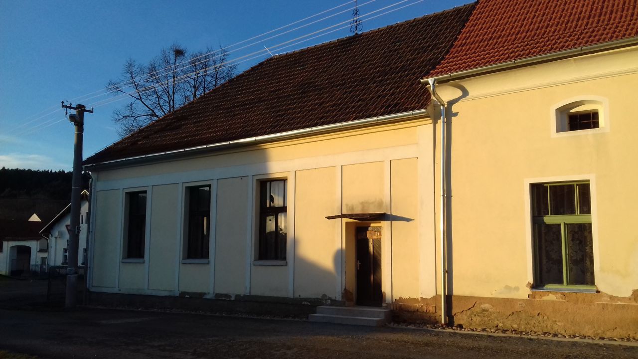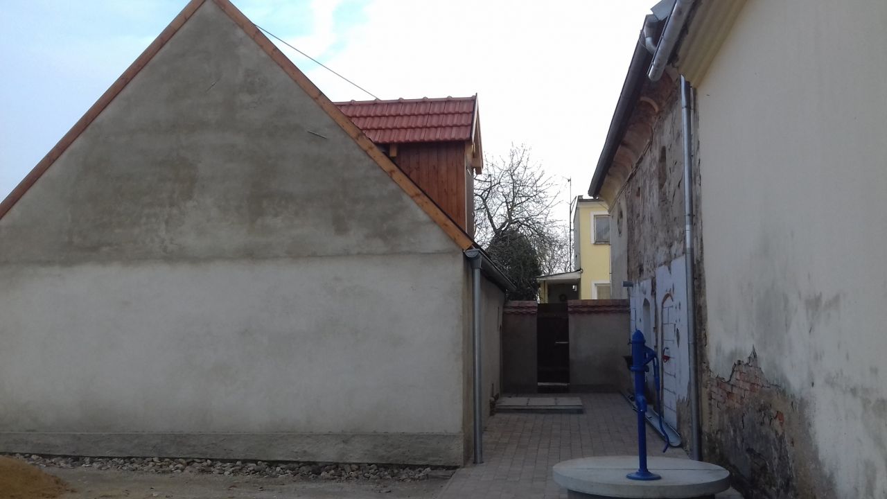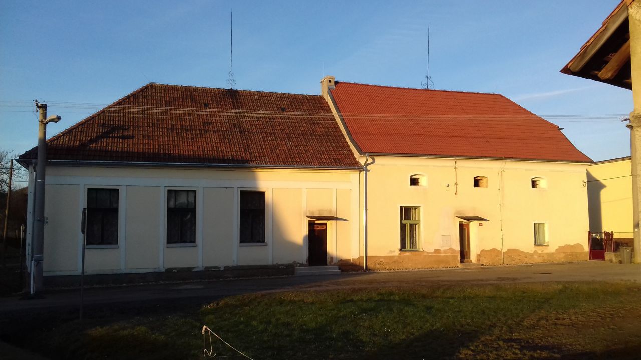 Pohledy na objekt Špejcharu a venkovního sklepa v roce 2014 před obnovou a v roce 2017 po ukončení obnovy.